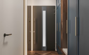 Stolarka okienna i drzwiowa zewnętrzna – zamontowane duże okna i drzwi balkonowo-tarasowe z aluminium w kolorze antracyt, z przeszkleniami do poziomu podłogi