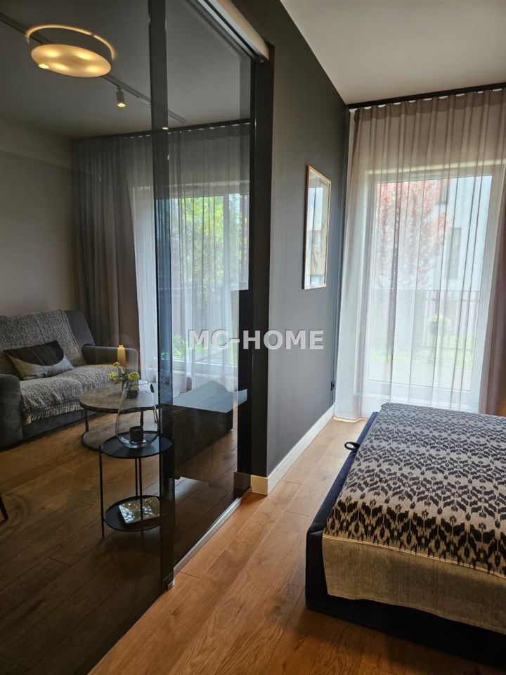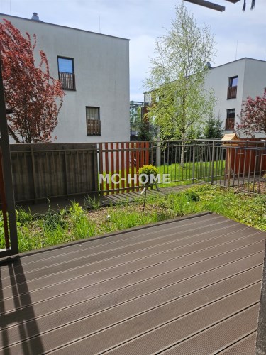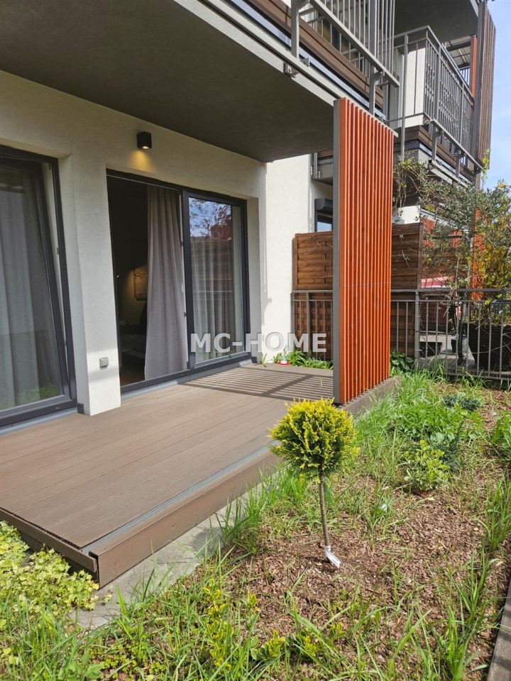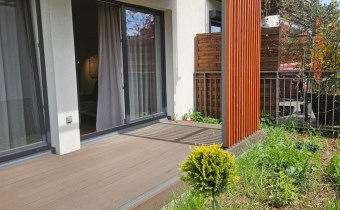 - imponujący taras ok. 25 m² z częścią zieloną oraz drewnianą strefą wypoczynkową