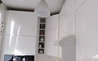 Odrębna, z oknem. Wyposażona w AGD: piecyk gazowy, zmywarka, piekarnik, lodówka. Białe meble oraz składany stolik.