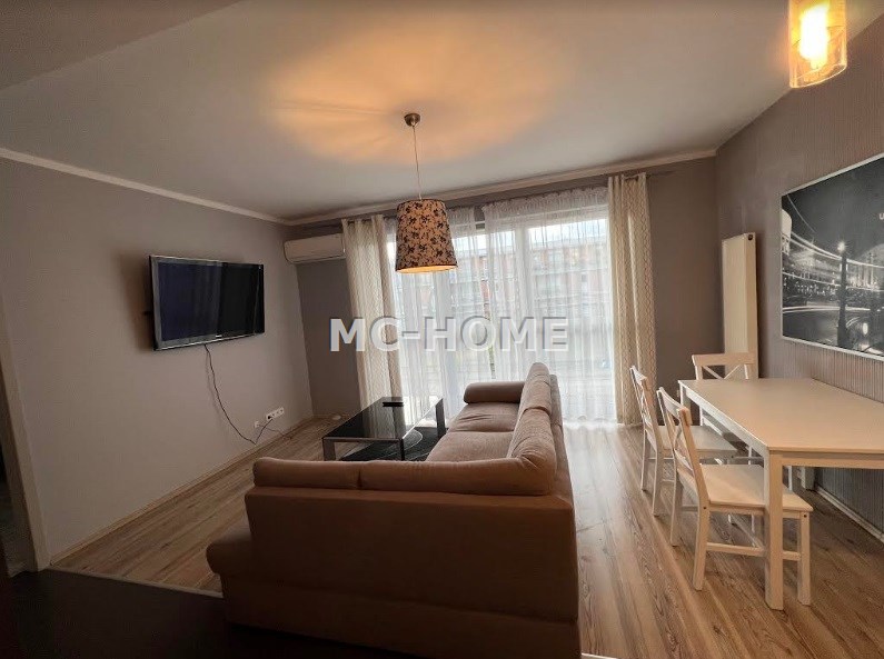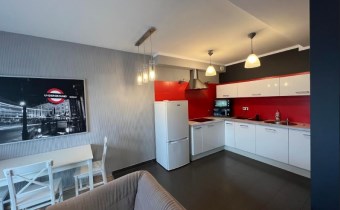 - Kuchnia w pełni wyposażona - lodówka, zmywarka, płyta elektryczna, garnki, sztućce, talerze. W pokoju dziennym wygodna kanapa rogowa, telewizor, stolik.
